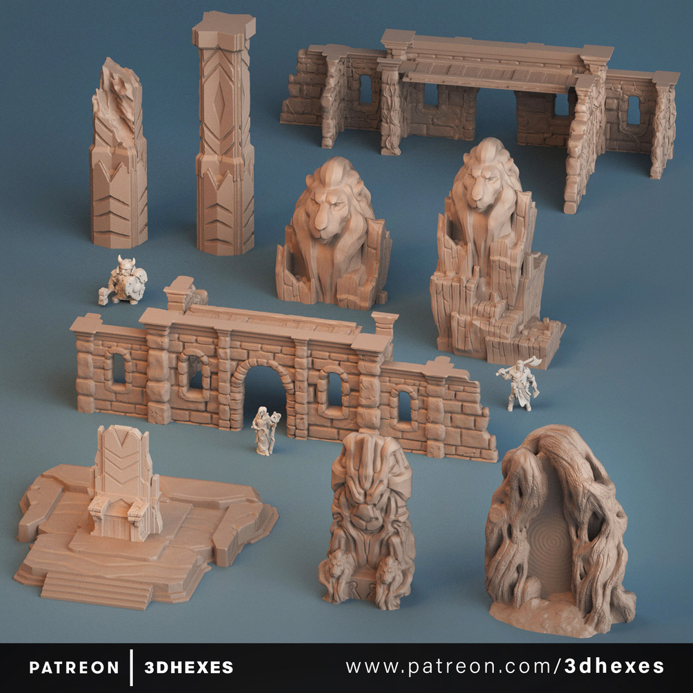 You can use these models with older Rewards and Ruins Entry for best results. The Throne Platform is printed separately, so it can be used in many other ways.