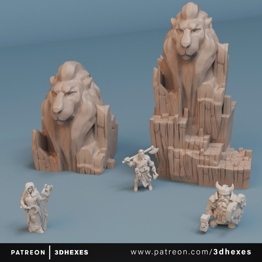 The miniatures presented in the pictures (dwarf, female druid and warrior) are made by Duncan "Shadow" Louca and are shown only for the scale. They are used with the knowledge and consent of the author. They are not included in the presented product.