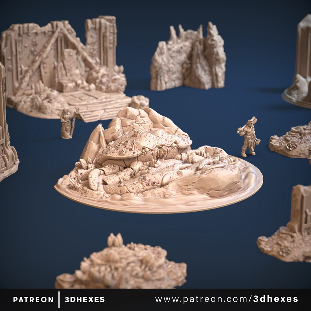 There are many ruins, architectural elements, a throne room, strange-looking geometric structures, and even a giant crab patiently waiting for its victims await in this bundle.
