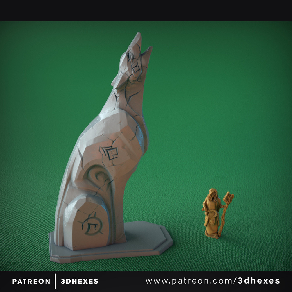 - STL files of Stylized Wolf Statue in 3 flavors: clean, runed, and savage.