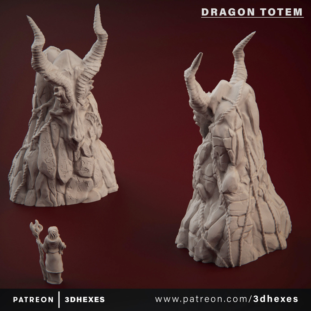 The head of a giant dragon tied to a rune-covered rock. Does that sound good? Definitely. The narrative possibilities of this model are endless, it all depends on your imagination.