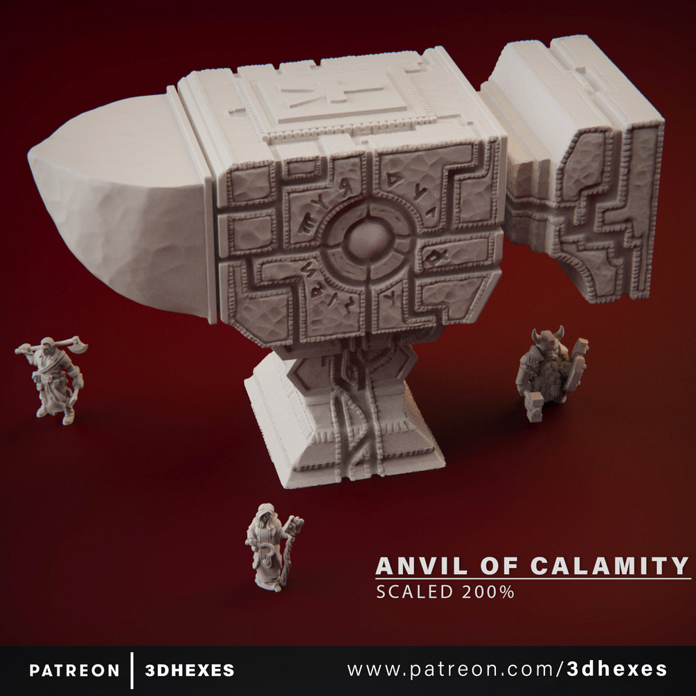Cool dwarven-themed piece of scenery (you actually can use it as a miniature), printable 100% supportless in 4 parts. I added an ancient stairs to this set that will help your dwarves gain access to the anvil.